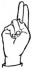 На ћирилици написано МОМЧИЛО ДОРОНТИЋ састоји се из 15 слова [?]. Исписано ћириличном једноручном азбуком за глувонеме: